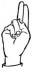 На ћирилици написано СИМОНА ГРУЈЕСКОВИЋ састоји се из 17 слова [?]. Исписано ћириличном једноручном азбуком за глувонеме: